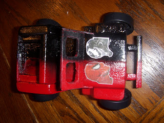 Now that Tyler is in scouts we get the joy of being involved in Pinewood Derbys. Tim was so excited about it. I noticed with alot of these dads, they "help" their kids make their "dream car" into a pinewood derby car. Tim went on-line and found a cool design....and of course it is his favorite car... a Willies Jeep.